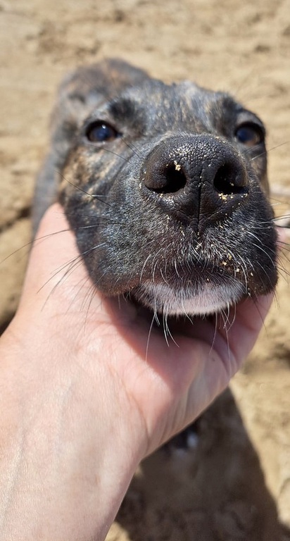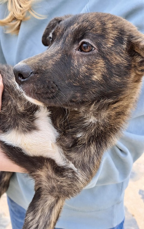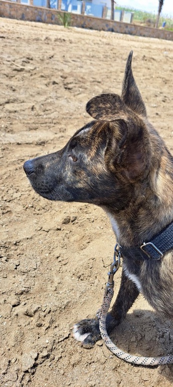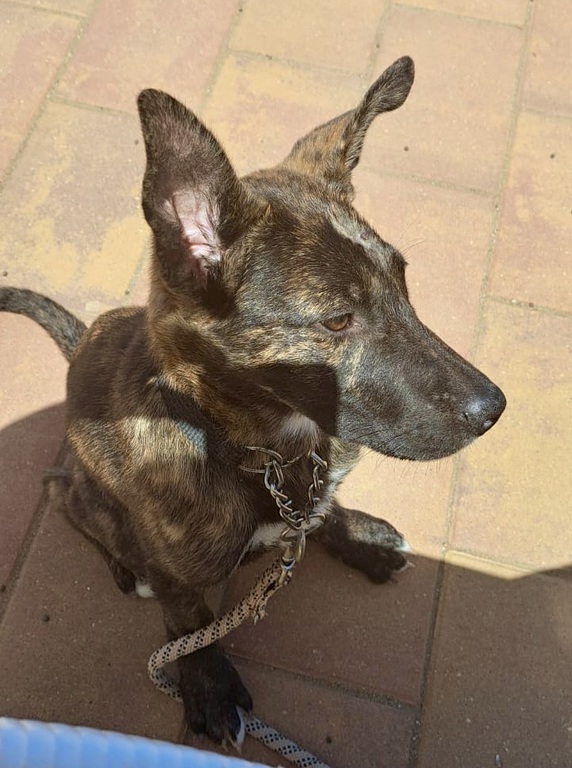 Matilda ist vermutlich ein Bardino-Retriever-Mix. Ihr gestromtes Fell und die tollen braunen Augen machen sie zu einer absoluten Schönheit. Sie ist derzeit (Mai 2024) 40 cm hoch. Die Hübsche ist altersgemäß sehr verspielt und ein sehr gutmütiger Hund. Sie schmust gern und braucht viel Zuwendung.