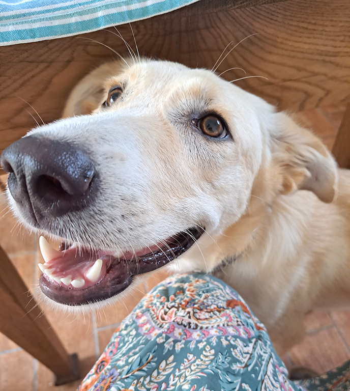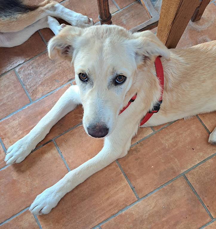 Hundemädchen Wilma und ihre Schwester Hanni wurden im Januar 2023 geboren. Seit ihrer Rettung im Februar sind nun einige Monate vergangen. Wilma und Hanni sind seitdem privat im Haus unserer Kollegin untergebracht und lernen dort von den beiden erwachsenen Hunden das Hundeeinmaleins. Sie kennen Katzen und haben Respekt vor ihnen. Die Beiden sind zu bildschönen großwerdenden Mixen herangewachsen. In ihnen könnte väterlicherseits ein Galgomix stecken. Ihr schlanker Wuchs und Agilität im Spielen lassen es vermuten. Wilma hat ein absolut freundliches Wesen, geht offen auf Menschen zu. Sie ist verspielt, gelehrig, aber auch ein Dickschädel, wenn sie etwas nicht will! Sie wirkt zunächst sicherer als ihre Schwester Hanni, wird nur unsicher, wenn sie etwas nicht kennt oder versteht. Mit Leinenführigkeit ist es bei ihr noch schwierig, da hält sie gegen. Alles, was sie als Zwang empfindet, boykottiert sie, ist aber meist mit Leckerchen aber gut zu überzeugen. Wilma mag es zu schmusen, aber Bürsten? Das ist ihr nicht ganz geheuer. Mit Erziehung und Training wird sie ein Traumhund sein, auch bei fortschreitendem Alter. Beide Hündinnen sind freundlich und verspielt – und gut für jede Art von Unfug