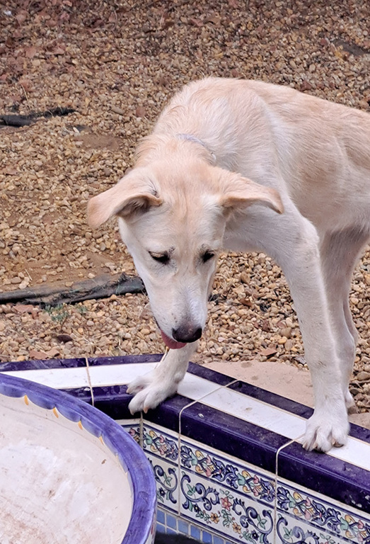 Der Springbrunnen im Garten, Wasserschüsseln oder das kühle Nass beim Sprengen begeistert sie. Obwohl sie von ihrer Mutter aufgrund der Umstände recht früh getrennt wurde, ist Wilma durch die Gemeinschaft mit den erwachsenen Hunden sehr gut sozialisiert. Wilma ist komplett geimpft und könnten kurzfristig aus Spanien ausreisen. Wir vermitteln sie auch einzeln. Lebt im neuen Zuhause kein Kumpel so ist es wichtig, dass sie in diesem Fall genügend soziale Kontakte zu Artgenossen hat. Wilma ist kein Hund für die Stadt, wir wünschen uns für sie eine ländliche Umgebung oder eine Lage am Stadtrand. Das Mädchen reist komplett geimpft, gechipt und mit EU-Heimtierausweis in ihr neues Zuhause. Die neue Familie muss die Hündin dann gemäß Schutzvertrag in passendem Alter kastrieren lassen und uns die erfolgte Kastration durch eine tierärztliche Bescheinigung nachweisen. Da die Welpen im Winter gefunden wurden, ist die Gefahr, dass sie von Mittelmeerkrankheiten betroffen sind, relativ gering. Tests sind zudem in diesem jungen Alter nicht aussagefähig, daher werden sie nicht durchgeführt. Aber der neue Halter sollte dies zur Sicherheit nachholen, wenn die Weibchen ein Jahr sind. Wir beraten gern dazu. Wir vermitteln Wilma ausschließlich mit Vor- sowie Nachkontrolle, Schutzvertrag und Schutzgebühr.