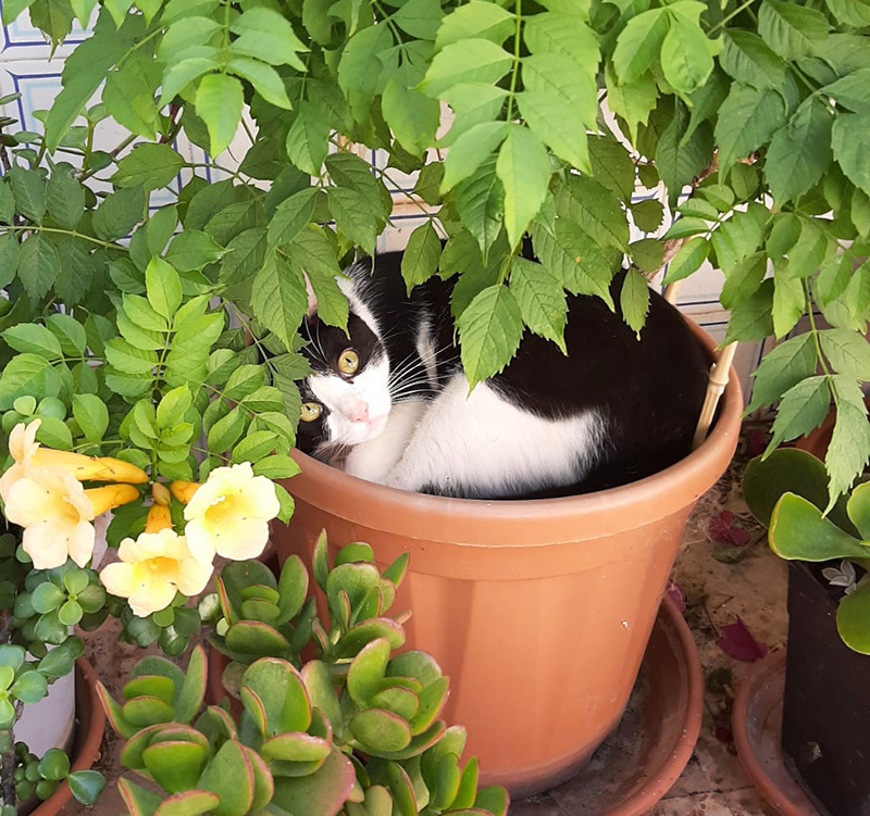 Heute liebt Arnie es, den Bauch hinzuhalten, um gekrault zu werden – und auch unter dem Kinn ist ein ganz guter Platz für Streicheleinheiten. Er hat absolutes Vertrauen, es bedurfte nur eines Initialzünders… Jo! Arnie ist heute sehr physisch, er liebt es, seinem Pflegefrauchen um und durch die Beine zu streichen, sodass dieses wirklich aufpassen muss. Der Kater hat noch nie irgendwelche Form von Aggression gegenüber Menschen, Katzen oder Hunden gezeigt, er ist einfach nur herzensgut.