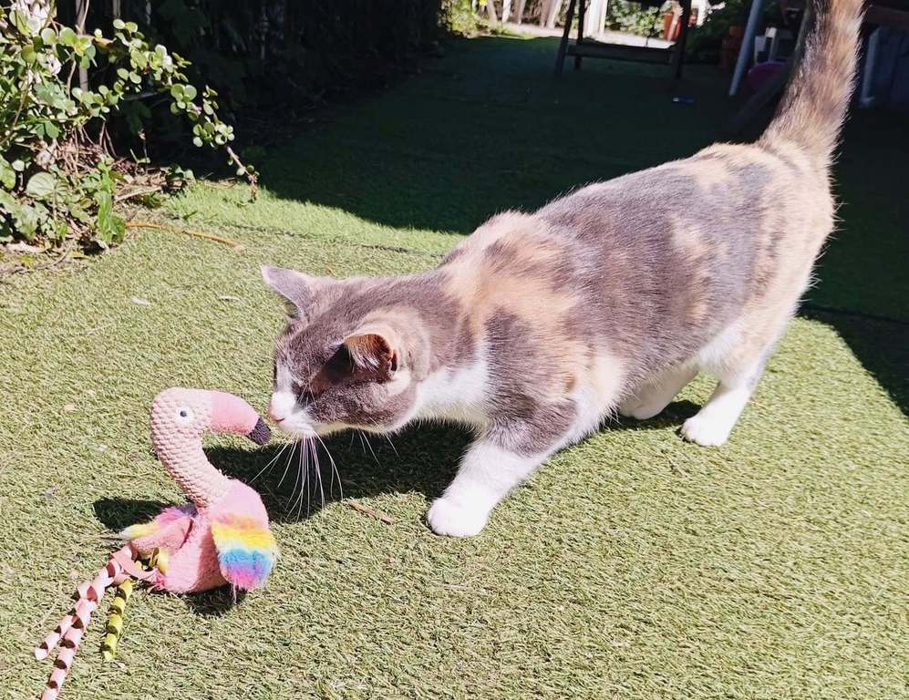 Atenea geniest ihr Katzenleben. Sie ist sehr sozial und verspielt, braucht unbedingt kätzische Gesellschaft. Hunde kennt die niedliche Bunte nicht.