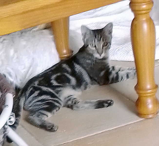 Möchten Sie dem Katerchen mit der tollen Fellmusterung ein Zuhause geben? Mailen Sie mir bitte oder rufen mich an.