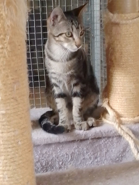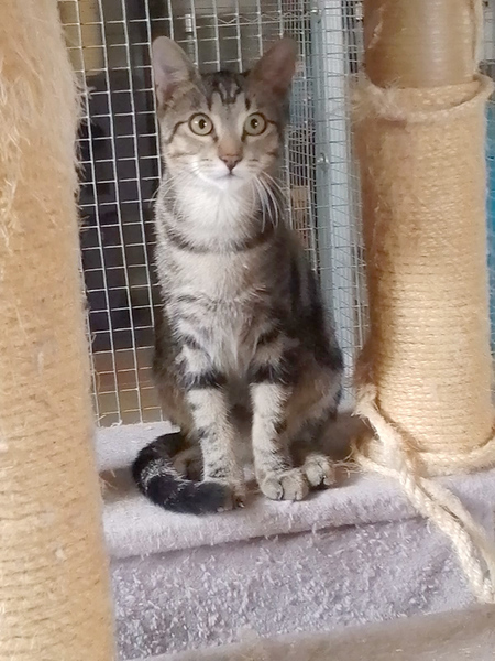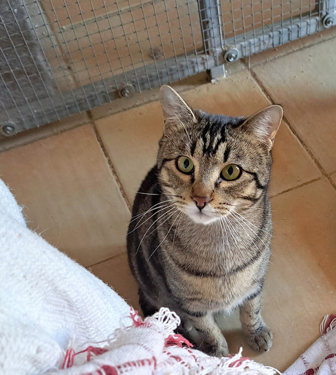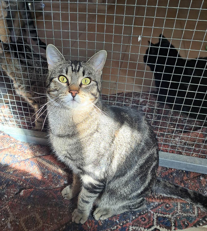 Cosmo ist ein 2022er Maikater. Der hübsche spanische Tiger war etwa fünf Wochen alt, als er an einem Sommerabend auf der Fensterbank am Haus unserer Pflegestelle auftauchte und leise mauzte. Nur mit viel Glück und durch die Tatsache, dass der Kleine damals noch nicht so schnell und flink war, konnte Cosmo noch am selben Abend gesichert werden. Seine Retterin hatte diverse physische Blessuren, der Kleine war erst einmal traumatisiert.