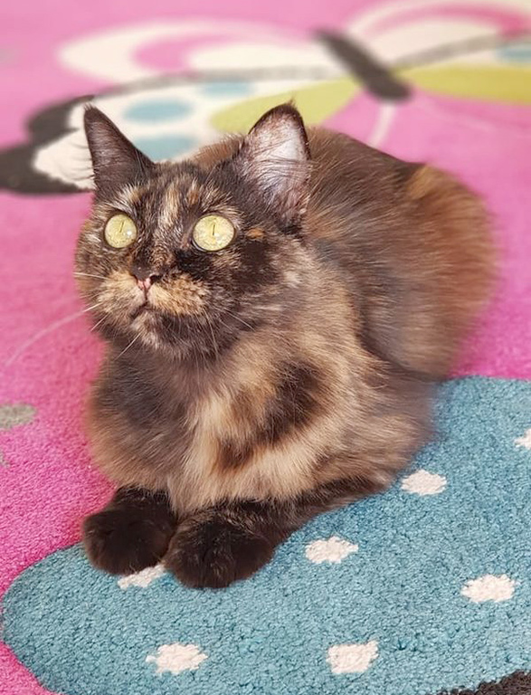 Die Hübsche liebt es mit Mäusen, Bällen und Federangeln zu spielen, liegt aber auch gerne faul in der Sonne oder guckt aus dem Fenster. Mit ihrem niedlichen Stimmchen begrüßt sie einen, erzählt kurz was oder hüpft zu einem mit einem *brrr* aufs Bett. Kleine Kinder sollten nicht im Haushalt leben, da sie anfängt zu zwicken, wenn ihr etwas nicht passt. Fluffy hat einen etwas verkürzten Knickschwanz, was sie aber in keinster Weise beeinträchtigt.