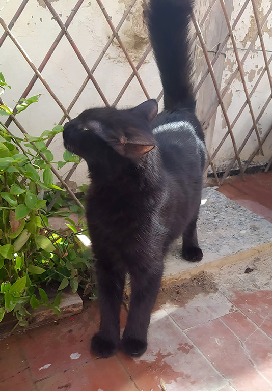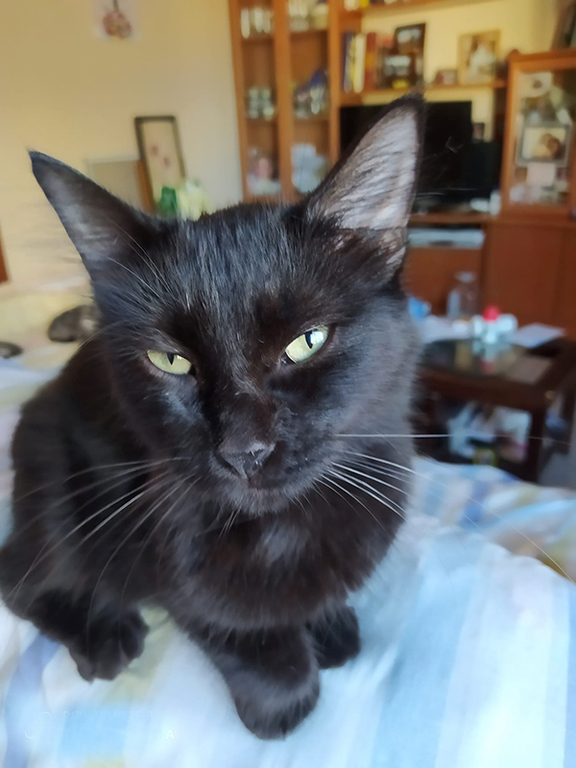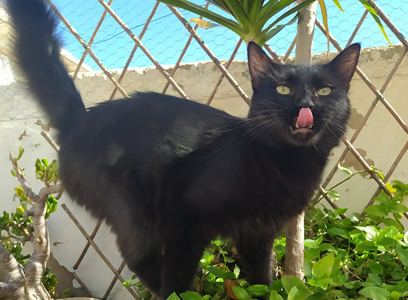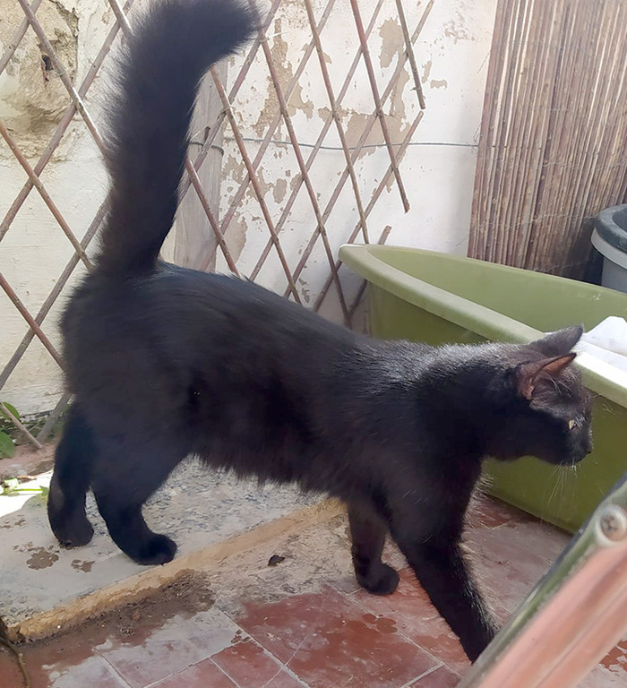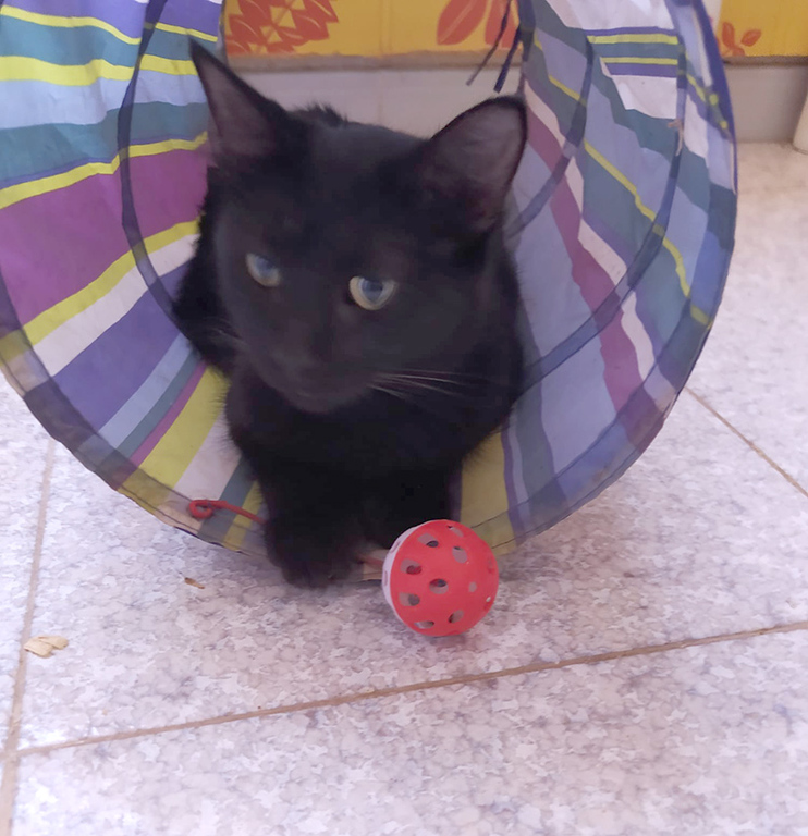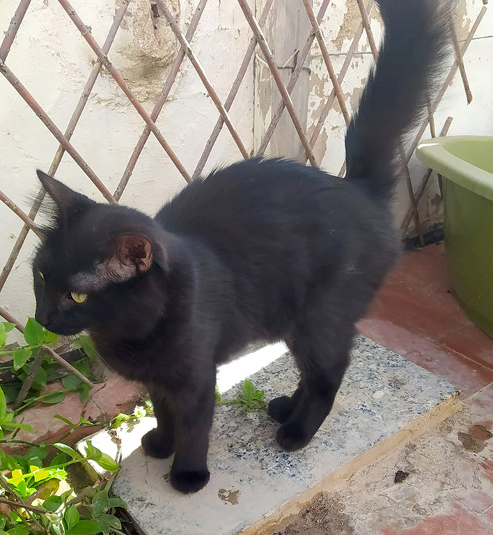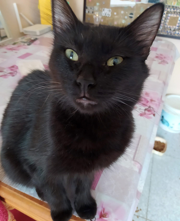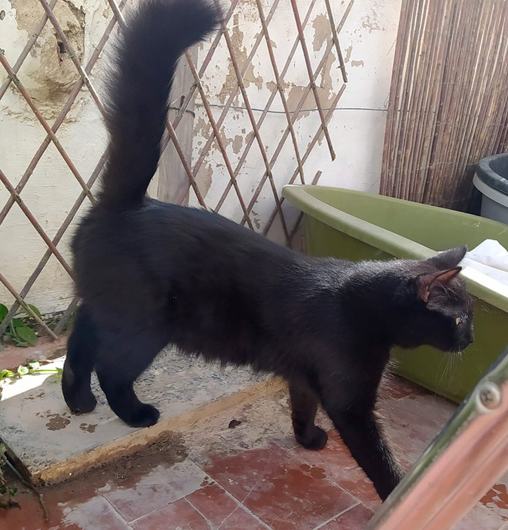 Der tolle Schwarze wurde schon als kleiner Mann von der Straße gerettet. Die Tierärztin schätzte seine Geburtstag auf August 2020. Der ehemals zerzauselte Kater erhielt den Namen Grunch, hat sich aber zu einer absoluten Schönheit mit seidigem Fell und einem eindrucksvollen Schwanz entwickelt.