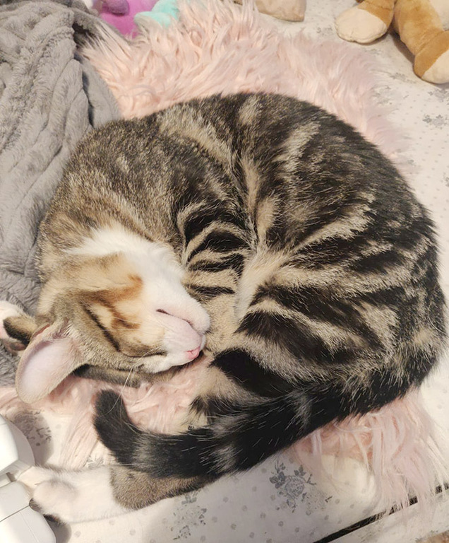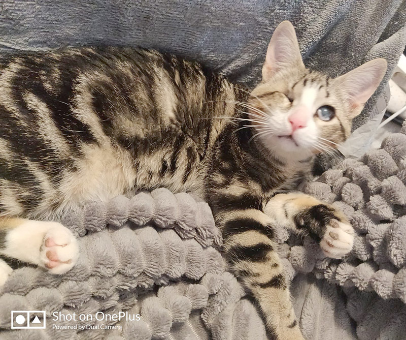 Dünn, voller Parasiten und mit vom Katzenschnupfen hochgradig entzündeten Augen brauchten sie lange für ihre Gesundung. Gegenwärtig brauchen sie keinerlei Medikamente.