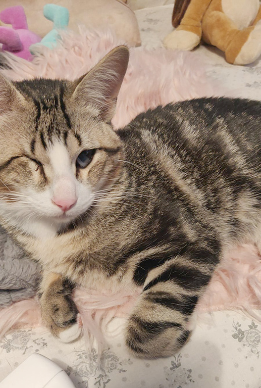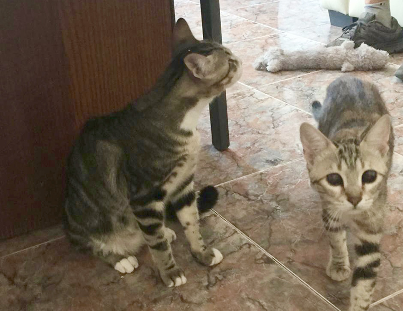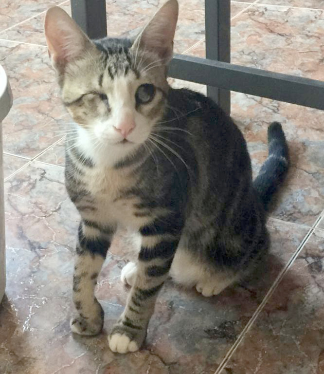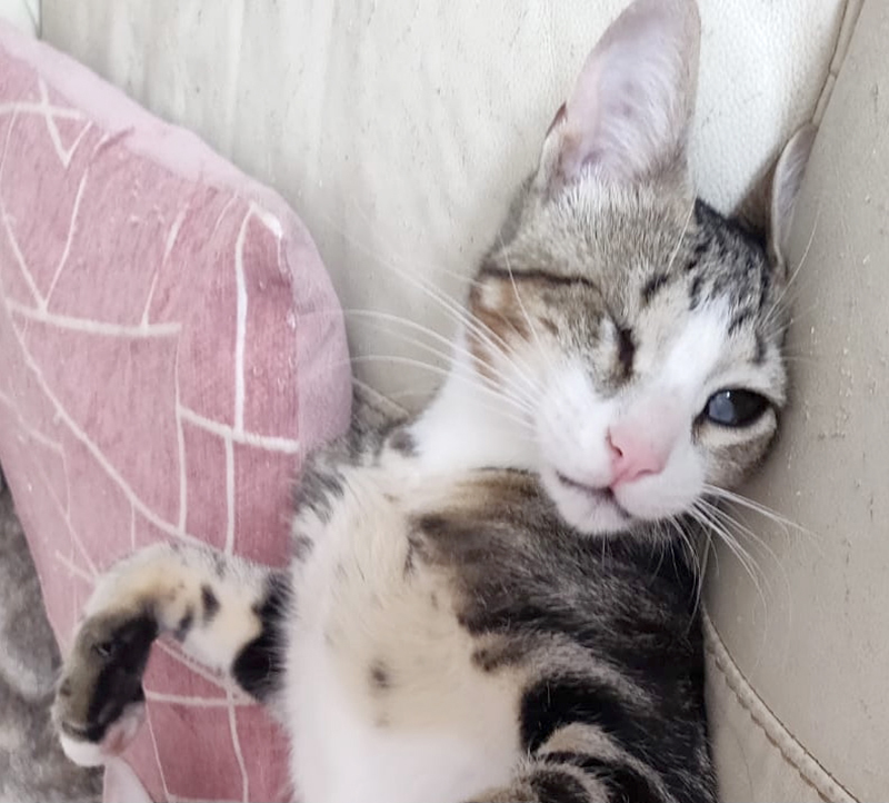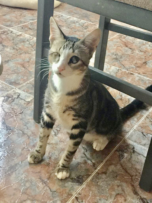 Pamino musste ein Auge operativ entfernt werden, seine Schwester kam durch intensive Behandlung um die OP herum, ist aber definitiv in ihrem Sehvermögen eingeschränkt. In der Pflegestelle in Spanien merkt man nichts davon, sie spielen und klettern wie gesunde Katzen.