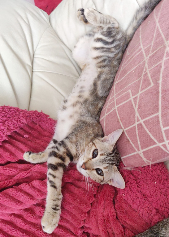Die schöne Lavi, deren Namen aus dem Hebräischen kommt und LÖWE bedeutet, ist ebenso wie ihr Bruder Pamino eine echte Kämpfernatur. Geboren im Herbst 2020 wurden sie in Spanien als Winzlinge in sehr schlechtem Zustand gefunden.