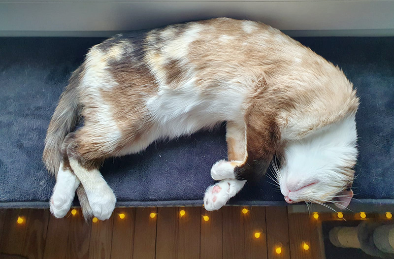 Manchmal packt Luquita aber auch die Spiellust. Am liebsten pfötelt sie dann kleine Stoffmäuschen oder Bälle durch die Wohnung. Auch mit einer Federangel lässt sie sich ab und an zum Jagen animieren. Das geht aber nur auf einem Untergrund mit etwas Grip, wie zum Beispiel einem Teppich.