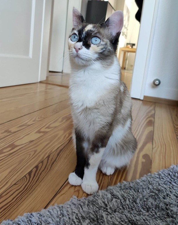Anderen Katzen verhält sie nach anfänglicher Skepsis freundlich gegenüber. Knurren und Fauchen gehören nicht zu ihren Kommunikationswegen.