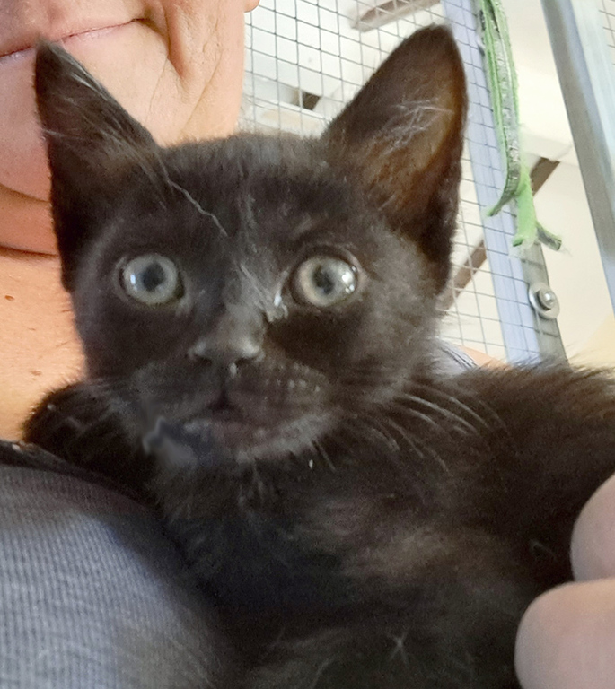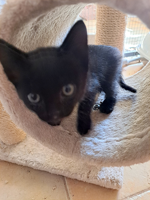 Der agile Schwarze hat einen starken Willen, kommt sehr gut mit allen Artgenossen klar, macht aber sein eigenes Ding. Hängt auch gern mit den älteren Katzen ab. Und Momo ist immer hungrig! ?