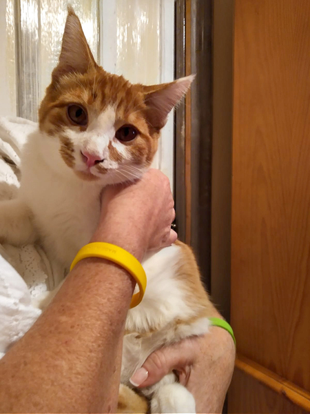 Unser wunderschöne, weißrote Kater Mr Purralot ist von Grund auf einfach wahnsinnig liebenswert und einmalig – äußerlich wie innerlich! Mit seinem Knubbelschwanz und seinen Bernsteinaugen ist Mr Purralot ein Unikat. Seine langbefellten Ohren haben jeweils niedliche weiße Spitzen Zudem hat er seinen Namen nicht von ungefähr: Sobald er seine Menschen sieht, fängt er an zu schnurren (Purr a lot bedeutet: er schnurrt viel).