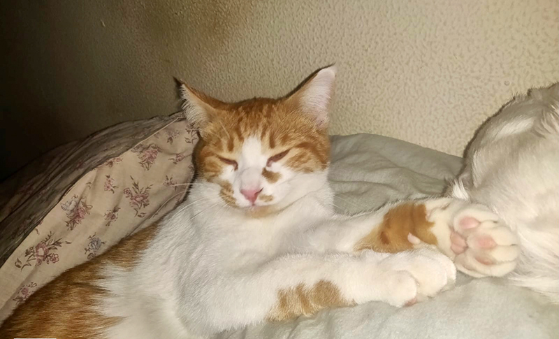 Dieser charmante kleine Kater mit dem vielsagenden Namen Mr Purralot wurde am 20. April 2021 geboren. Seine Mutter Fluffy war hochträchtig ausgesetzt worden, das arme Tier wurde zum Glück aufgenommen und gebar nach nur zwei Tagen seine Kleinen in Obhut unserer Tierschutzpflegemutter. Die junge Katze bekam vier Kitten, das kleine weibliche Kitten schaffte es leider nicht, es war zu schwach. ☹.