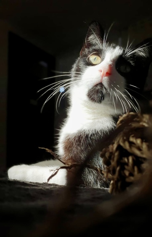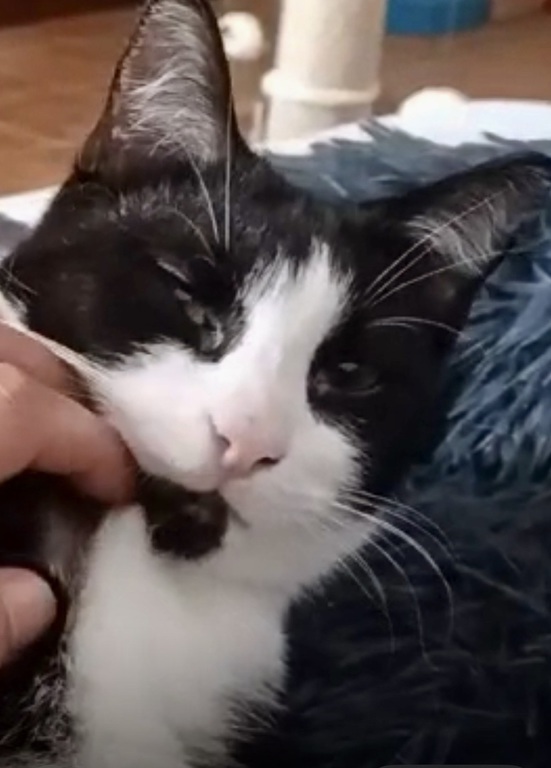 Silvester 2024 war eine spanische Tierschützerin unterwegs, um ihre Koloniekatzen zu versorgen. An der Futterstelle fand sie die hübsche Schwarzweisse, schwach, krank und mit entzündeten Augen. Die Katze über die Feiertage unversorgt zu lassen kam nicht in Frage, somit musste sie sofort zum Tierarzt und lies sich um Glück problemlos sichern.
