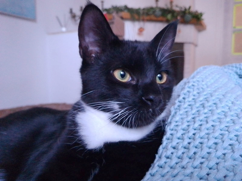 wunderschönes seidiges Fell und ganz feine Gesichtszüge und Ohrenkonturen. Dazu kommt seine Fellzeichnung, die an einen Smoking erinnert, womit er immer gut „gekleidet“ ist.