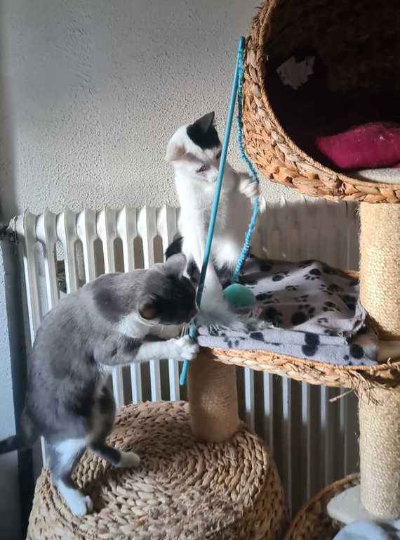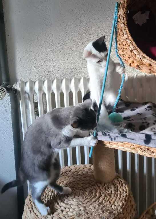 Die jungen Katzen leben seit Monaten nur im Haus, wir vermitteln sie daher in Wohnungshaltung. Ein Balkon wäre schön, der dann aber sicher vernetzt sein muss, bevor die Katzen einziehen. Ungesicherter Freigang kommt nicht in Frage.